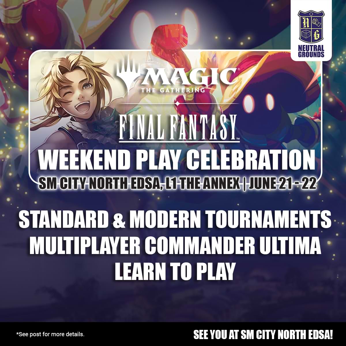 A portal has opened. The Warriors of Light and Planeswalkers are joining forces for the Magic: The Gathering — FINAL FANTASY Weekend Play Celebration in SM North Edsa L1 The Annex...