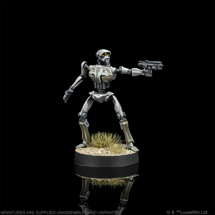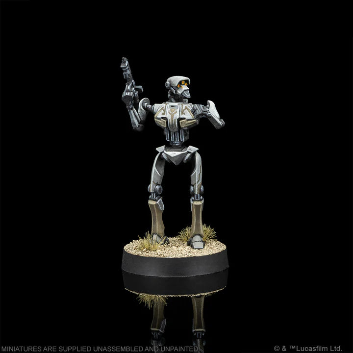 - This expansion contains everything you need to deploy your own Super Tactical Droid to battle your foes, beginning with a beautifully detailed, unpainted hard plastic miniature that can be assembled in three distinct poses. Meanwhile, three unit cards give you the freedom to choose the specific Super Tactical Droid to lead your army, whether it’s a standard model or the infamous Kalani or Kraken. No matter which droid you choose, three command cards help your Super Tactical Droid bend the battle to their will. Finally, six upgrade cards invite you to further customize your droid to fit your battle plan.