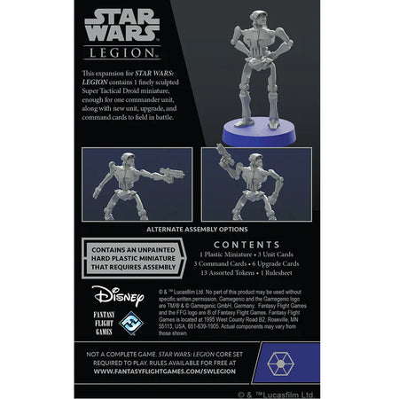 - Upgrade your tactics with the Super Tactical Droid Commander Expansion for Star Wars: Legion! An upgrade over the T-series Tactical Droid, the Separatist Alliance often calls upon these ruthless droids to serve as generals in their armies. Relying on cutthroat tactics, they will stop at nothing to accomplish their objectives.
