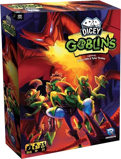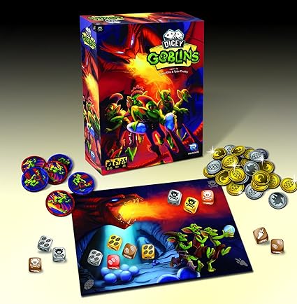 - Dicey Goblins is a press-your-luck dice game in which players take on the role of goblins stealing dragon eggs. The game is played in rounds, and each round consists of series of turns in which players decide whether they will attempt to raid the dragons lair or turn tail.