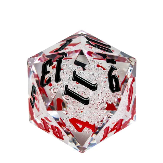 Acrylic Bubble 55mm D20 Dice—a captivating fusion of size, transparency, and playful charm! Each die is crafted from premium acrylic and features delicate, suspended bubbles trapped within, creating a mesmerizing effect that feels both light and airy. The large 55mm size ensures a bold presence at any tabletop session, offering a satisfying roll and a clear display of numbers. Perfect for collectors, RPG enthusiasts, or anyone seeking a unique statement piece, these dice are more than just functional—they're a conversation starter. Bring fun and flair to your next game night with these eye-catching acrylic bubble dice!