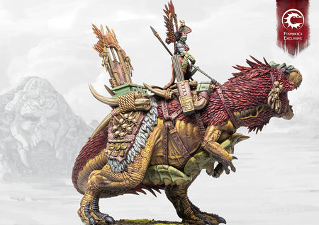 "When the Abhoreth Spire fell to the Dweghom advance, it was not only the W’adrhun who were released, millenia upon millennia of predatory and dangerous creatures, dormant fodder for the twisted Spire experiments, were released as well. Of all those countless creatures, none has thrived like the Apex predator. This monstrous beast has been harnessed by the W’adrhun as a living engine of destruction, lending its primal savagery to that of the W’adrhun forces. You also get a rider, an alt sculpt of the predator character.