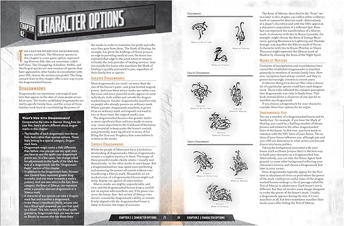 - SPARK NEW CHARACTER IDEAS—Explore 5 revised species, 18 backgrounds, and 28 feats, including the redesigned Dragonmarks, which are no longer species-locked