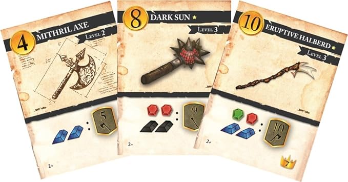 - Gameplay cycles through three different phases in each round. The first phase consists of moving pieces around a hex grid to maximize resource production. The second phase is a market phase that features an action blocking mechanic to gain access to new weapon plans and other advantages. The final phase is the acquisition and management of quests, which are selected from a pool of available cards.