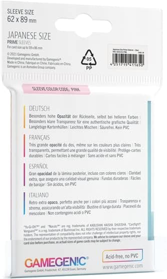 The Japanese-sized PRIME sleeves have an extra high coverage on the back, even with lighter colors. Durable sleeves prevent bent corners, scratches and damage from card shuffling. The finely structured back prevents the stacks of cards from slipping. For card game players with Japanese format cards like Yu-Gi-Oh !, Naruto, Cardfight, Vanguard and more.