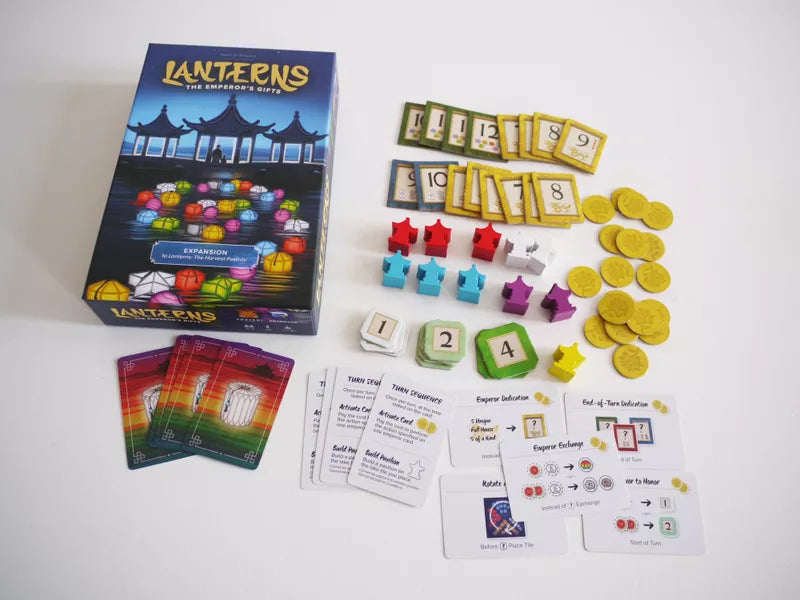 - The emperor has declared that pavilions shall be constructed among the lanterns floating on the lake for this year’s festival. Place pavilions to earn gifts from the emperor, and redeem those gifts for powerful actions to make this the best harvest festival yet!