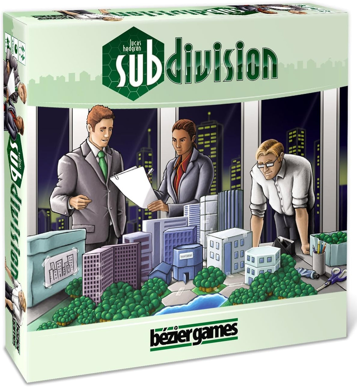 - Subdivision mimics the city-building feel of Bézier Games' Suburbia, but differs in scope as now each player has been allocated a specific area in which to create the best possible subdivision, filling it with residential, commercial, industrial, civic, and luxury zones, while balancing various improvements to the area, including roads, schools, parks, sidewalks, and lakes. By the end of the game, each player will have created a unique, custom neighborhood with areas that interact with each other, hoping to outscore the competition by having the best subdivision.