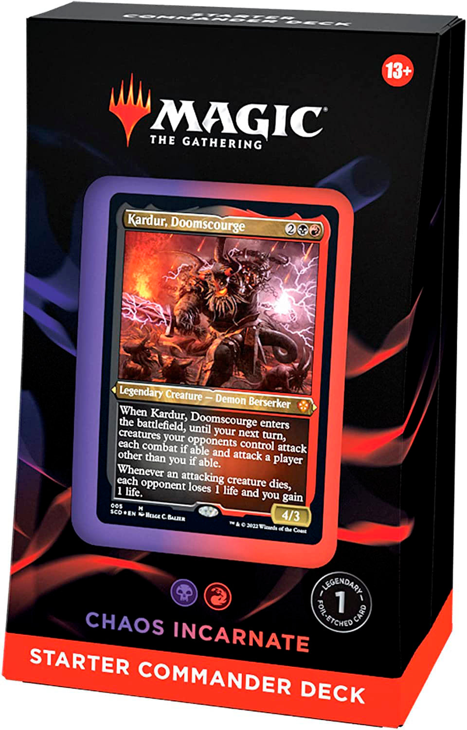 - READY-TO-PLAY COMMANDER DECK FOR NEWCOMERS AND FANS: Join friends in epic battles! This Magic: The Gathering Starter Commander Deck, Chaos Incarnate (Black-Red), is ready to play straight out of the box