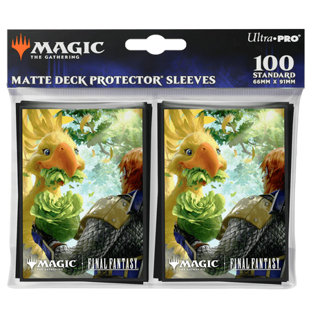 The Magic: The Gathering—FINAL FANTASY 100ct Deck Protector sleeves feature full-color artwork and are made with our proprietary ChromaFusion Technology™ to prevent peeling. Archival-safe polypropylene materials ensure you can sleeve your cards with confidence. Sized for standard size trading cards measuring 2.5 in. x 3.5 in. The matte finish offers a glare-free, camera ready play experience!