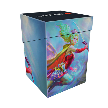 The Magic: The Gathering®—FINAL FANTASY™ Terra, Herald of Hope (Commander) 100+ Deck Box® card storage container features vibrant, full-color artwork and includes one deck divider. Made with archival-safe, non-PVC, rigid polypropylene materials, you can store up to 100 double-sleeved cards with confidence. The self-locking lid keeps your cards securely stored when not in use, while also offering easy access. Sized for standard-size trading cards.