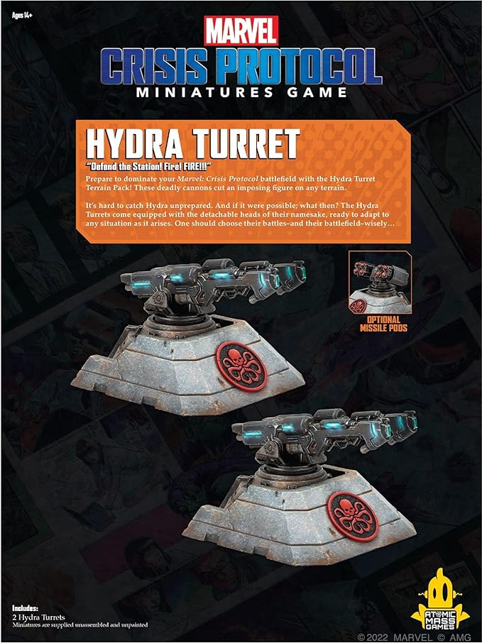 - Prepare to dominate your Marvel: Crisis Protocol battlefield with the Hydra Turret Terrain Pack! These deadly cannons cut an imposing figure on any terrain.