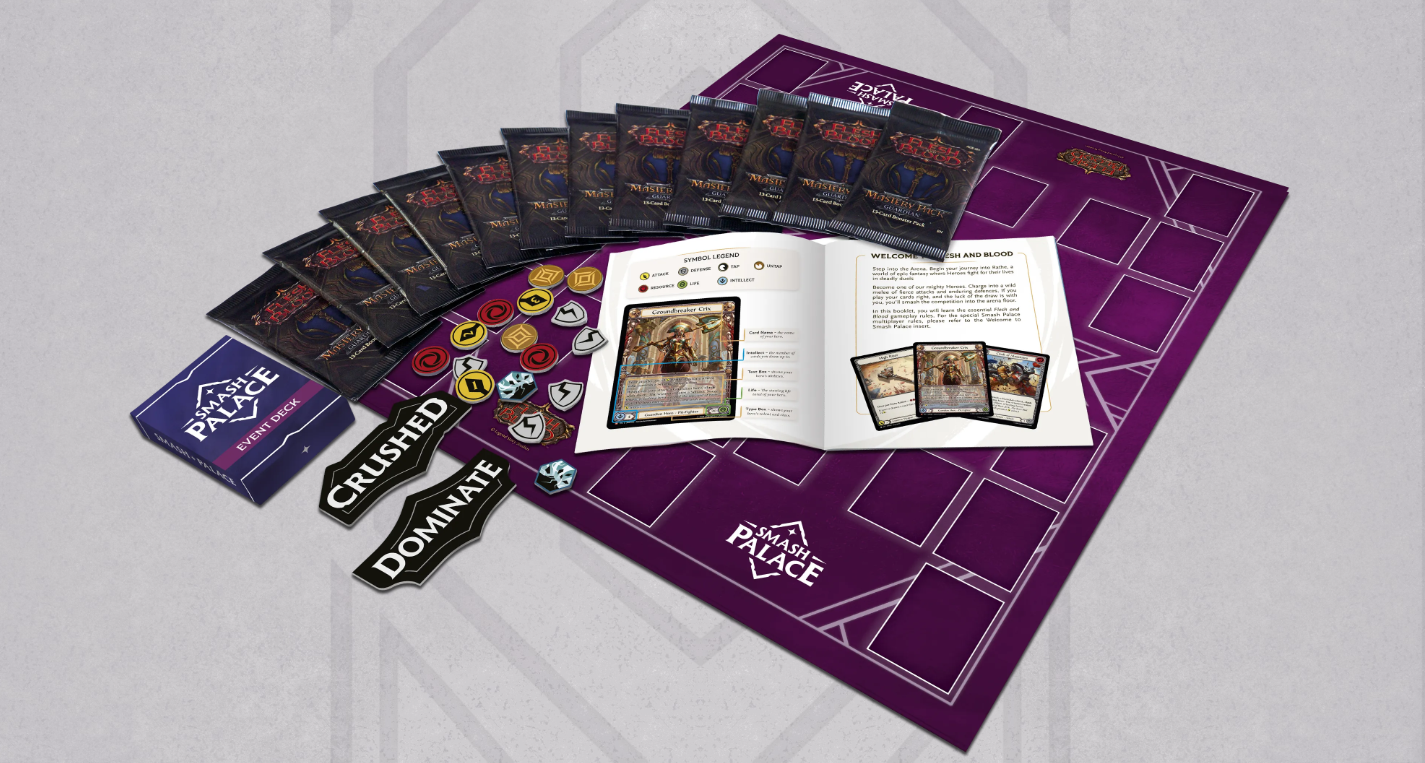 Smash Palace brings multiplayer melee to Flesh and Blood like never before, and it's as simple as Crack, Shuffle, Play! Crack 3 packs, remove the last 3 cards from each pack, Shuffle the rest, and Play.