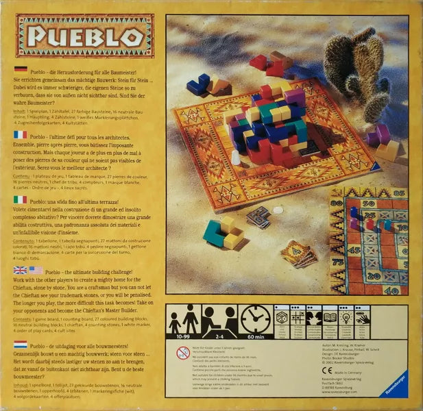 - Pueblo - the ultimate building challenge! Work with the other players to create a mighty home for the Chieftain, stone by stone. You are a craftsman, but you cannot let the Chieftain see your trademark stones, or you will be penalized. The longer you play, the more difficult this task becomes! Take on your opponents and become the Chieftain's Master Builder.