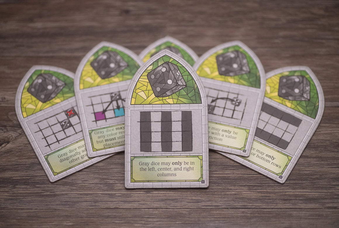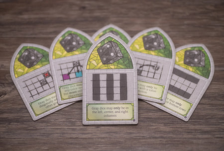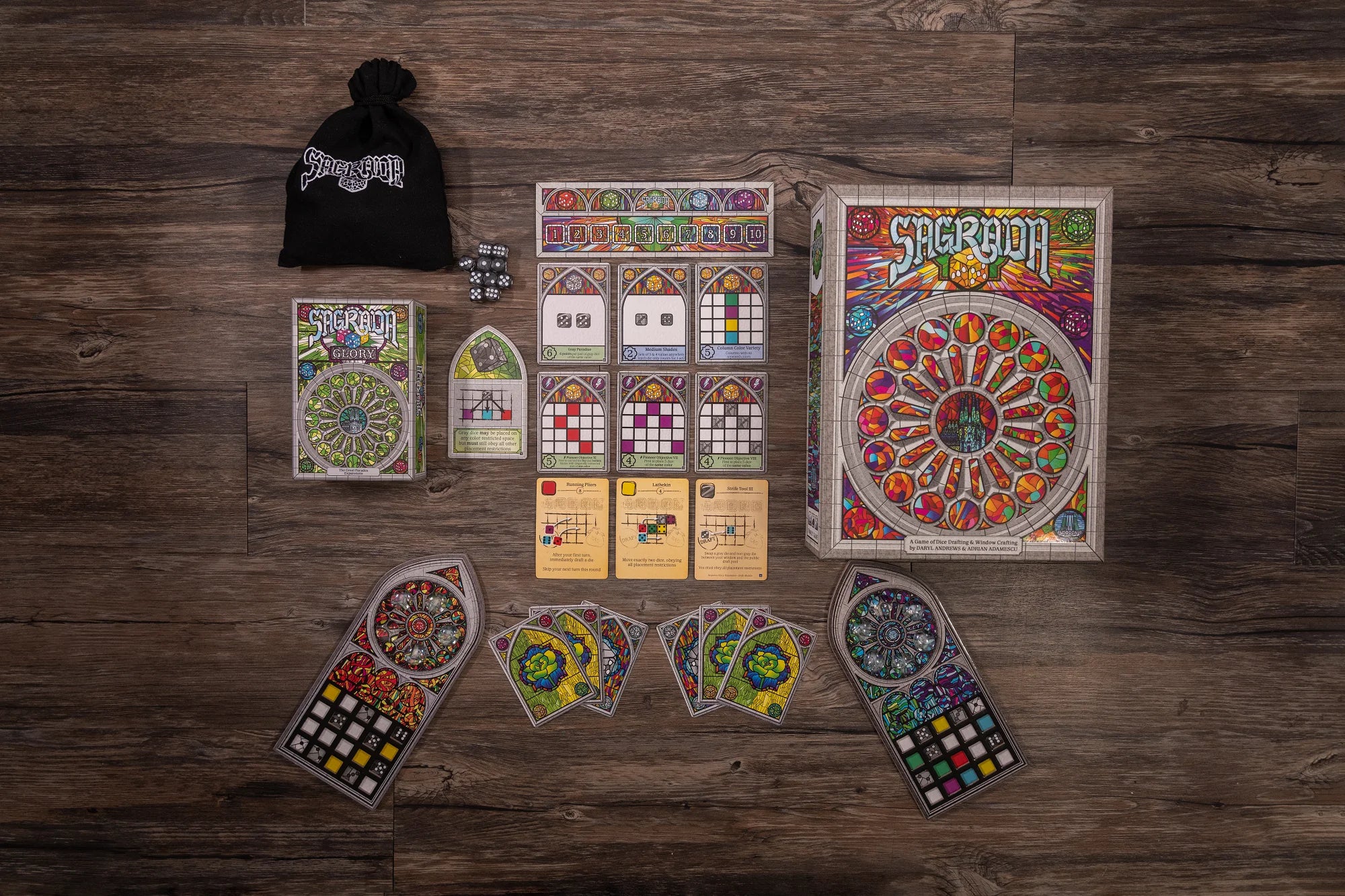 Sagrada: Glory introduces new options to test your artisanal skills! All new Strife Dice are now available in addition to the drafting pool with restrictions on their placement. Be the first to achieve new objectives with Pioneer Cards, and be rewarded for your unique style with the private objectives in the Flourish Module.