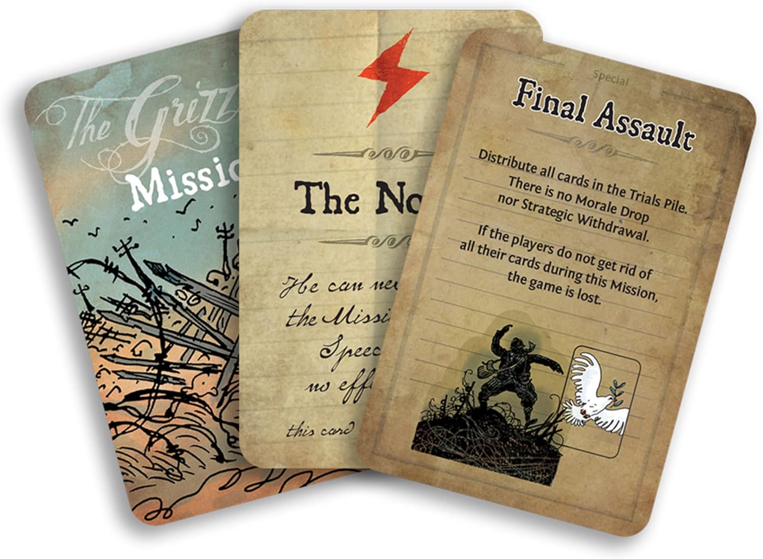 - Each round, the mission leader draws two of these cards, then decides which one to attempt. These missions might affect the number of starting cards in a round or allow players not to lose a round due to a specific condition, such as night or rain.