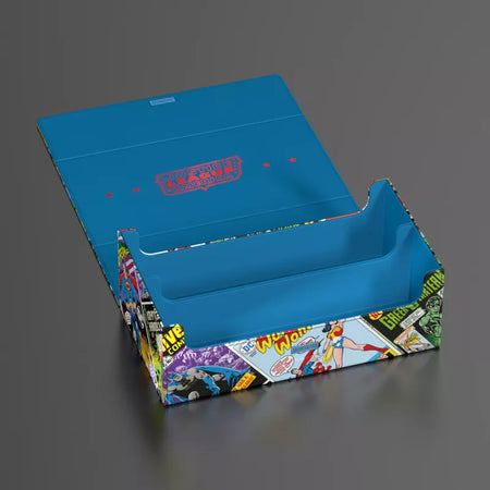 The perfect storage box for TCG decks and trading cards meets legendary comics from the DC Universe! The Collectors Case is the perfect home for up to eight Squaroes from our DC JUSTICE LEAGUE™ series. But of course it doesn't necessarily have to be Batman, Wonder Woman & Co: This Collectors Case in a unique vintage comic design is also suitable for storing other deck boxes, individual trading cards (up to 1000 in double protective sleeves) or gaming accessories of all kinds. The full-color printed, durable Xenoskin material and the strong magnetic closure with ZnapClaw mechanism also ensure that all contents are kept safe.