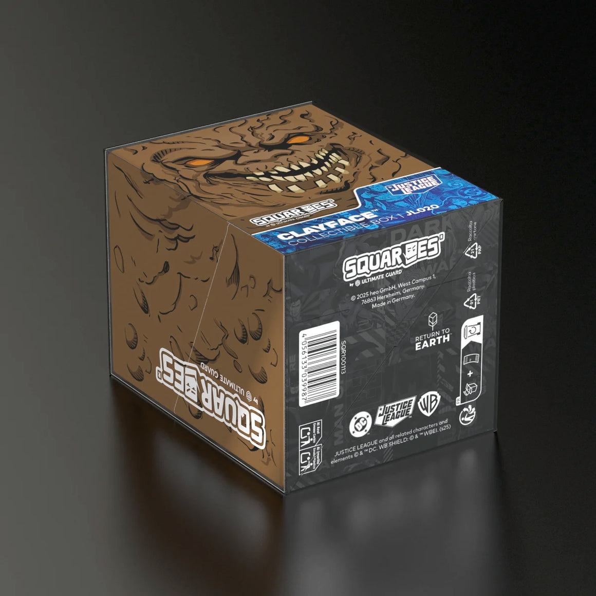 Collectible box for storing TCG decks, tabletop gaming accessories, and/or collectibles. The Clayface Squaroe from the DC Justice League™ edition holds up to 100 cards in double protective sleeves if used as a deck box. Squaroes are made from 78% renewable recources.