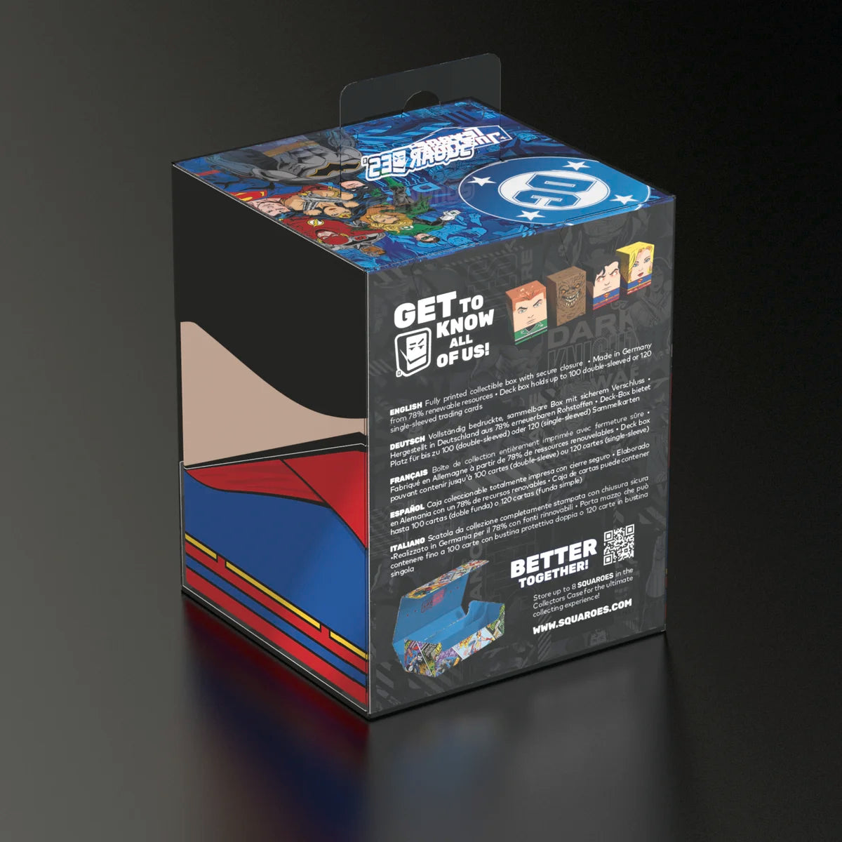 Collectible box for storing TCG decks, tabletop gaming accessories, and/or collectibles. The Superman X-Ray Vision Squaroe from the DC Justice League™ edition holds up to 100 cards in double protective sleeves if used as a deck box. Squaroes are made from 78% renewable recources.