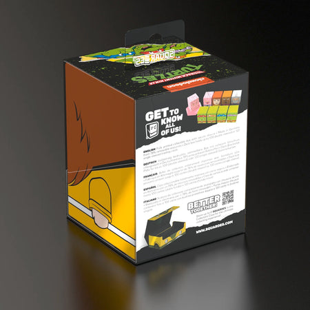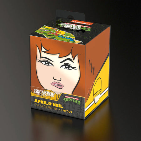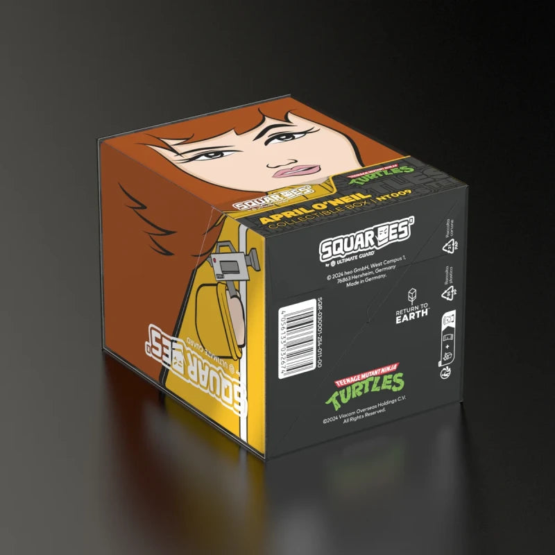 Collectible box for storing TCG decks, tabletop gaming accessories, and/or collectibles. The April Squaroe from the Teenage Mutant Ninja Turtles™ edition holds up to 100 cards in double protective sleeves if used as a deck box. Squaroes are made from 78% renewable recources and fit perfectly into the separately available Collectors Case.
