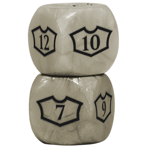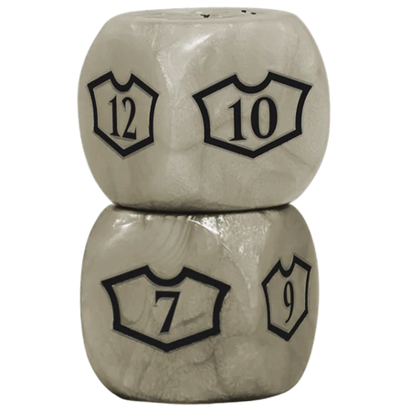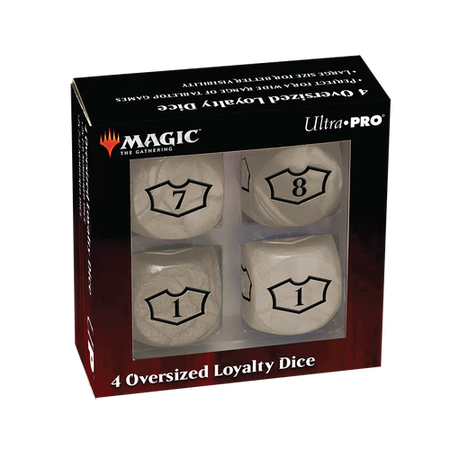 Show your Loyalty with the updated Deluxe Loyalty Dice for Magic: the Gathering! Each face features the iconic "loyalty" outline with numbers 1-6 on two dice and 7-12 on the other two dice, allowing you to save up for that ult with a single die face representing your progress clearly. Each set includes four (4) six-sided dice, measuring 22mm, packaged in a reusable storage box. Rounded corners allow dice to roll further for better randomization and protect gaming table surfaces from dents or marks.